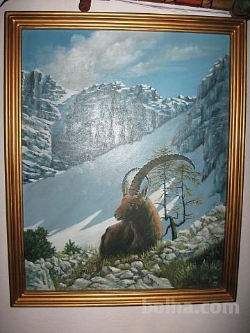 Prodam lepo ohranjeno sliko kozoroga in alp v ozadju. Slika lepo paše v lovsko dnevno sobo ali lovsko kočo. Slika je uokvirjena in ima dimenzije 65 cm višine in 52 cm širine. Ogled in prevzem možen v Kranju. Dosegljiv sem preko e-pošte (ave.lukasan@gmail.com) in preko sms-a na številki 051 344 724.