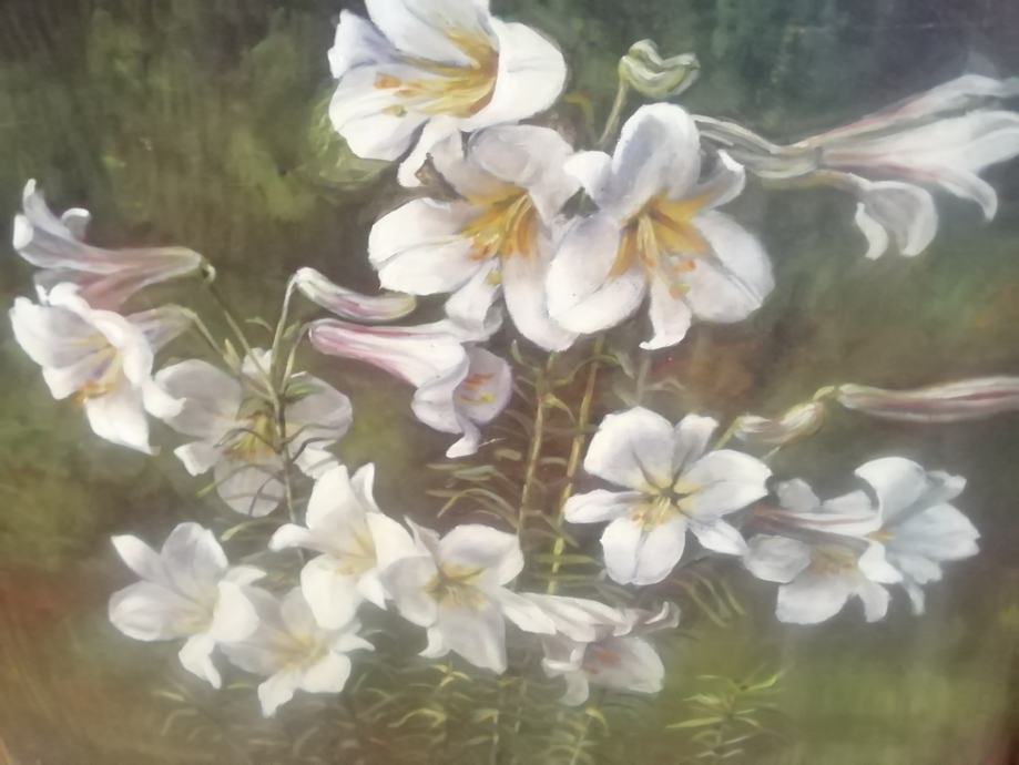 SLIKA, olje na platno, starejša,lilije, podpisana, lepo ohranjena, 85×67cm,prodam.tel.070/271-607.