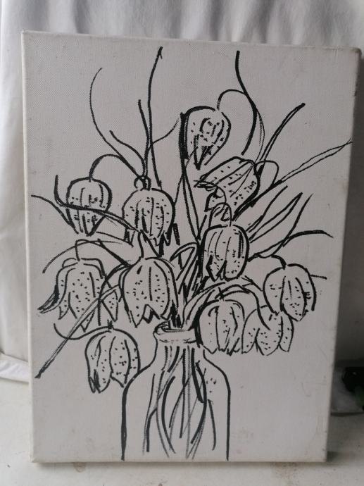 Na voljo je SLIKA na platnu brez okvirja in stekla 30 x 40 cm OVELE ROŽE V FLAŠI.