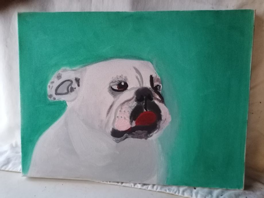 Na voljo je lepo ohranjena SLIKA na platnu brez okvirja in stekla 40 x 30 cm BULDOG.