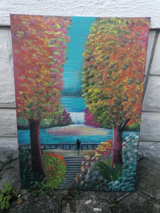 Na voljo je SLIKA na platnu brez okvirja in stekla 50 x 70 cm POGLED V SENCI.