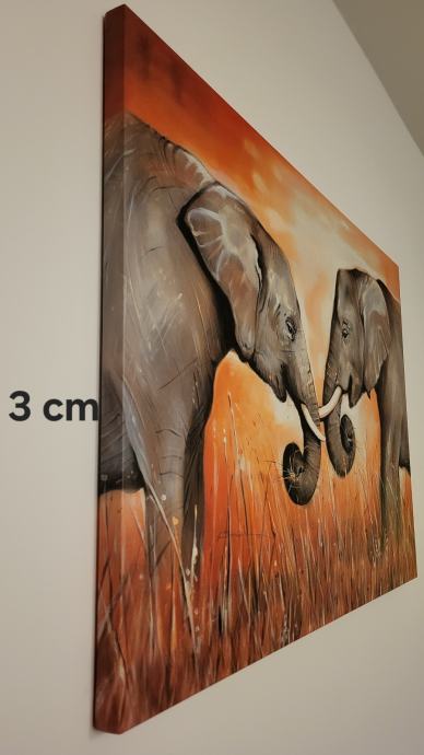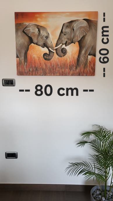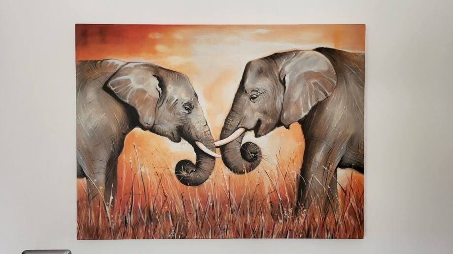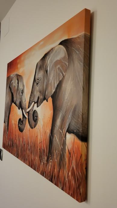 Prodam sliko na platnu Dva slona. Velikost 60×80, debelina 3 cm.