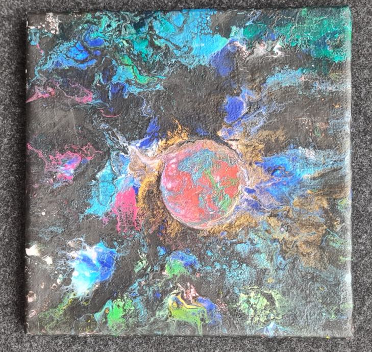 Unikatna avtorska slika akrila na platnu: Planet 20 x 20 cm.