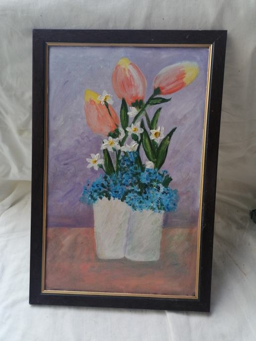 Na voljo je SLIKA na platnu v okvirju brez stekla 27 x 40 cm TULIPANI V VAZI.