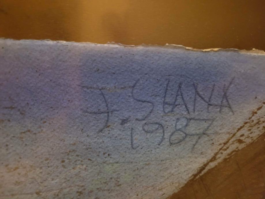 Slika riba, France Slana 1987, podpis zgoraj desno, notranja slika 75x55cm, zunanji okvir 98x77cm, akvarel.