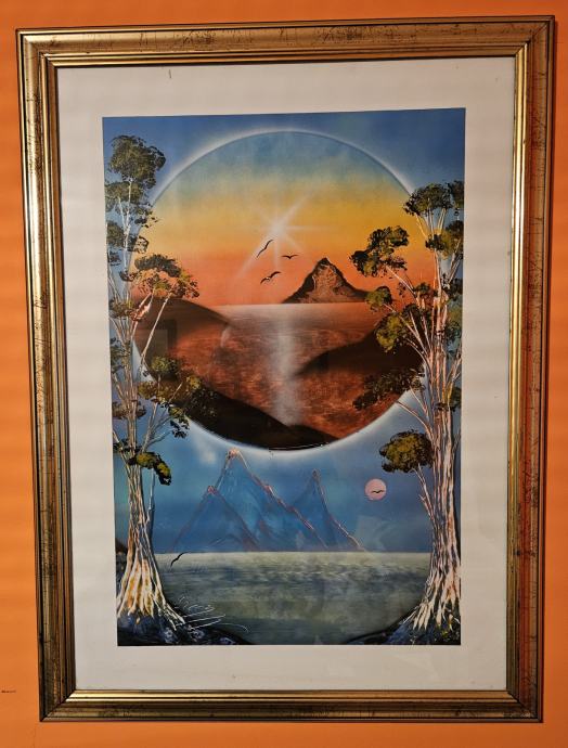 SLIKA, SONČNI ZAHOD, futuristična, 60 x 80 cm...samo okvir in steklo staneta 70 eur!