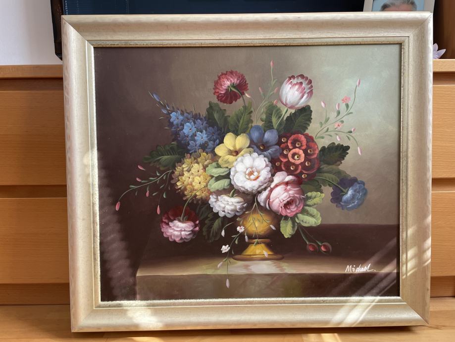 Prodam staro sliko tihožitje (šopek), okvir, podpisana.