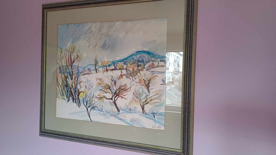 Prodam sliko v okvirju - zimska pokrajina s podpisom avtorja Albin Lugarič. Velikost okvirja 76 cm x 67,5 cm. Telefon 051 376 567.