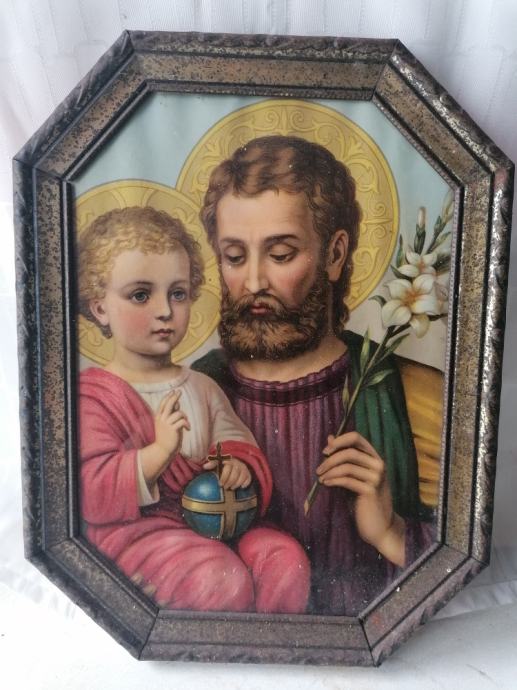 Na voljo je slika z zanimivim okvirjem in šipo 23 x 30 cm JOŽEF JEZUS.
