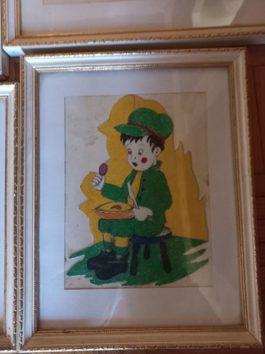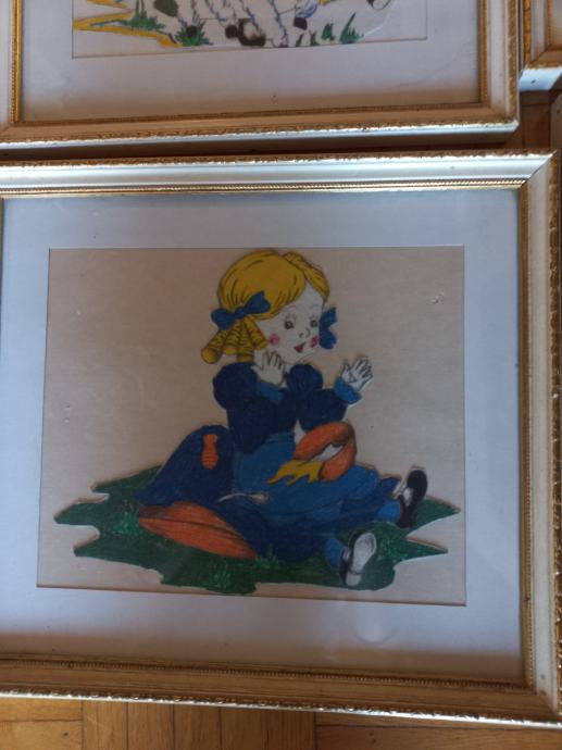 Slike akvarel, vintage, v okvirju, otroški motiv , cena je na kos