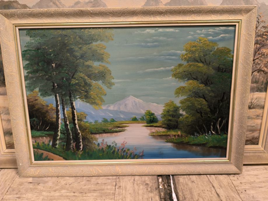 4. Reka in gore (neznan avtor), olje na les, velikost 58x38 cm