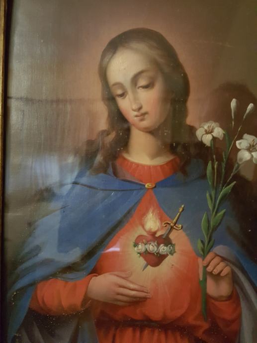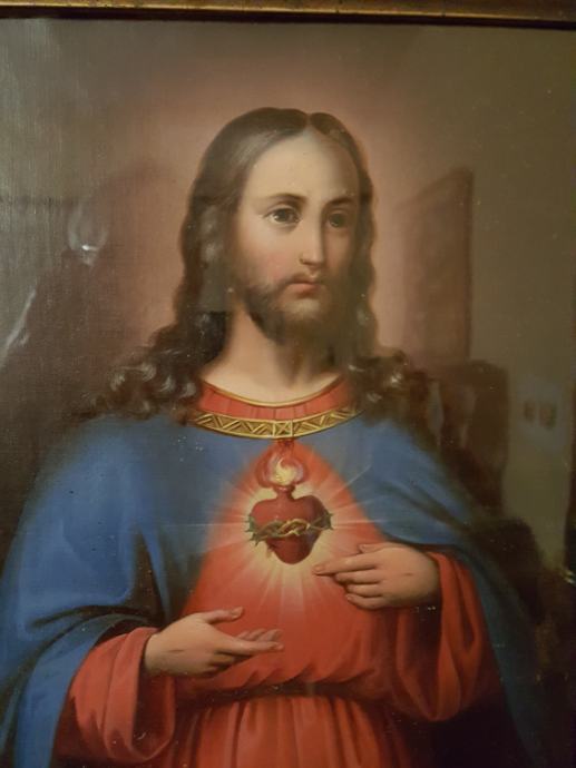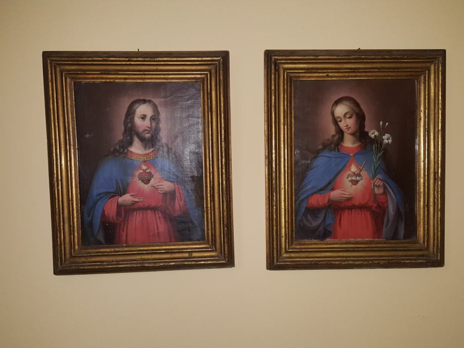 Čudoviti sliki jezus in Marija olje na platnu neznanega umetnika, obdobje pred 1900. Sliki izhajata iz meščanske hiše v Mariboru.