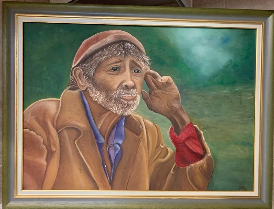 Zanimiva slika, naturalistično naslikan starec, v lepem okvirju