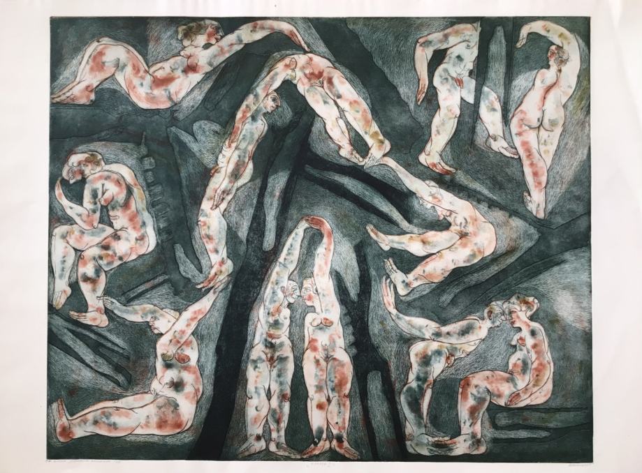 Todorče Atanasov, Zabava, jedkanica in akvatinta, EA, 1988, 65 x 78,5 cm