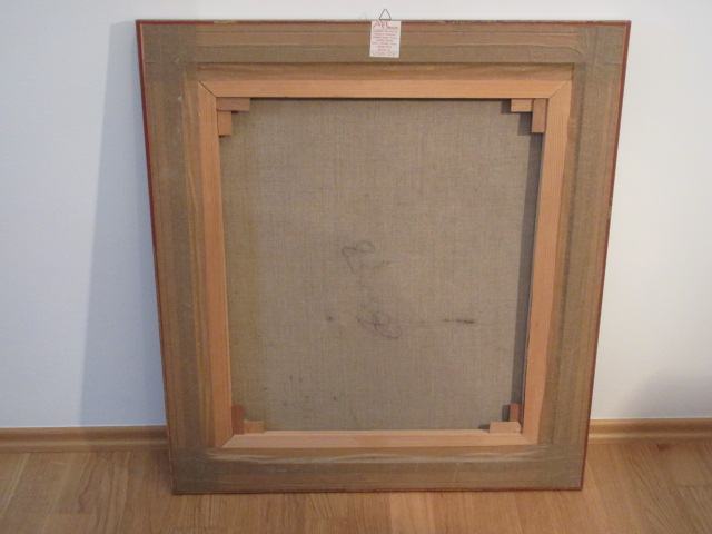 ŽENSKA Z MASKO v okvirju dimenzije 55x65 cm.