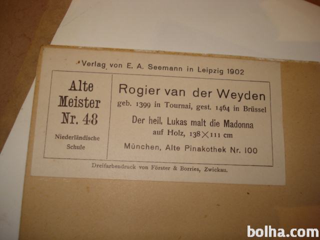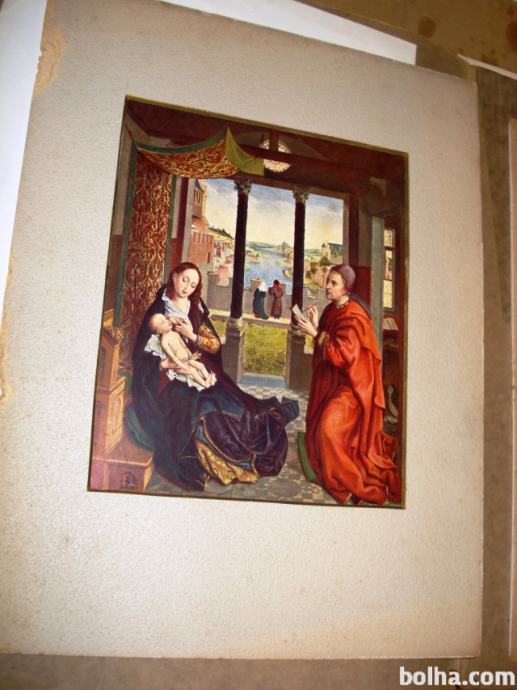 Trobarvni tisk v paspertuju ROGIER VAN DER WEIDEN SV LUKA IN MARIJA RENESANČNA SLIKA 15 ST TISKANO V LEIBZIGU 1902 MERE 29 X 22 CM