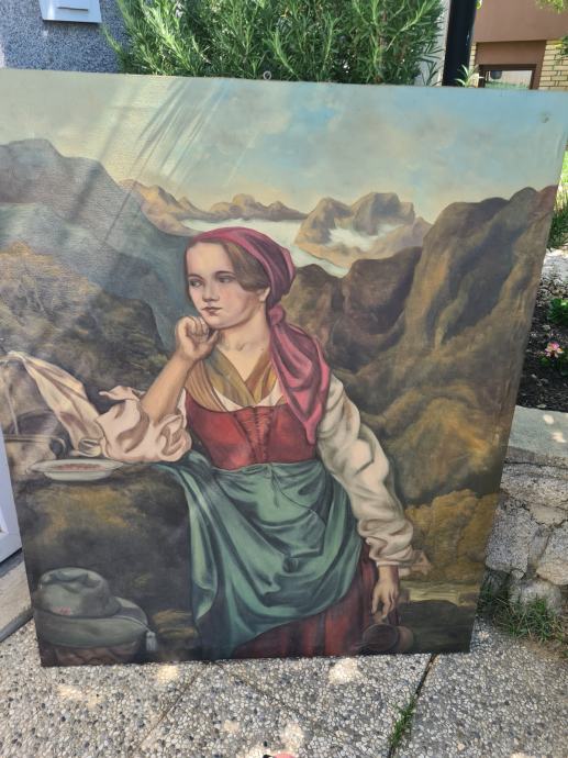 Prodaja se večja stara umetniška slika olje na platno dekle in gore, Velikost ca 110x90cm, - dajte ponudbo, - 199€