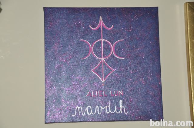 Na vijolični podlagi naslikan simbol: NAVDIH (alein lun), 20x20