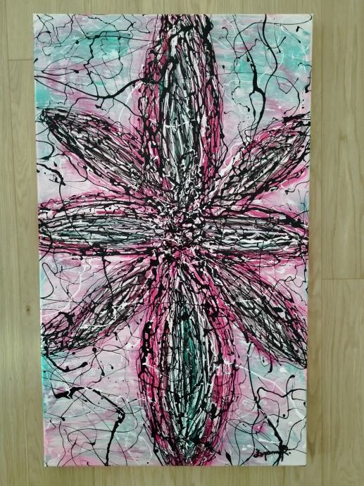 slika platno, akril-olje, action painting, dimenzije 60 x 90 cm, umetniško delo, leto 2024
