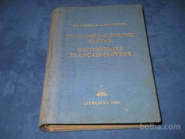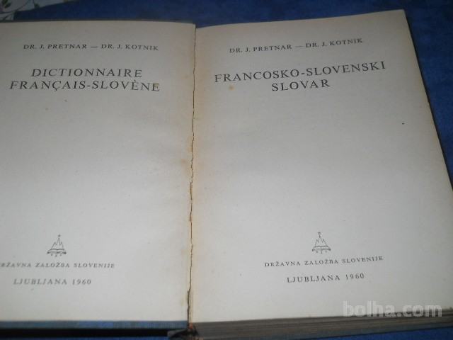 francosko slovenski slovar,avtorja Dr.J.Pretnar-Dr.J.Kotnik,državna založba Slovenije 1960 letnik,slovar ima 781 strani,pošljem po pošti ali osebni prevzem.