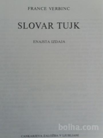 Prodam zelo lepo ohranjen (malo uporabljen) SLOVAR TUJK, France Verbinc, trda vezava, 11. izdaja, Cankarjeva založba, 1994, 770 strani