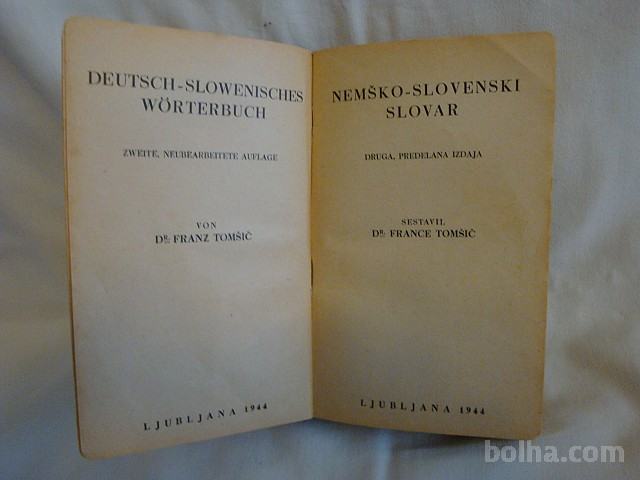 NEMŠKO - SLOVENSKI SLOVAR - F.Tomšič 1944