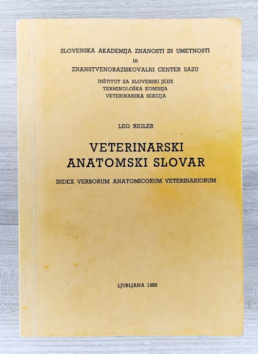 Prodam knjigo VETERINARSKI ANATOMSKI SLOVAR, Leo Rigler, Slovenska akademija znanosti in umetnosti 1985, mehka vezava. 264