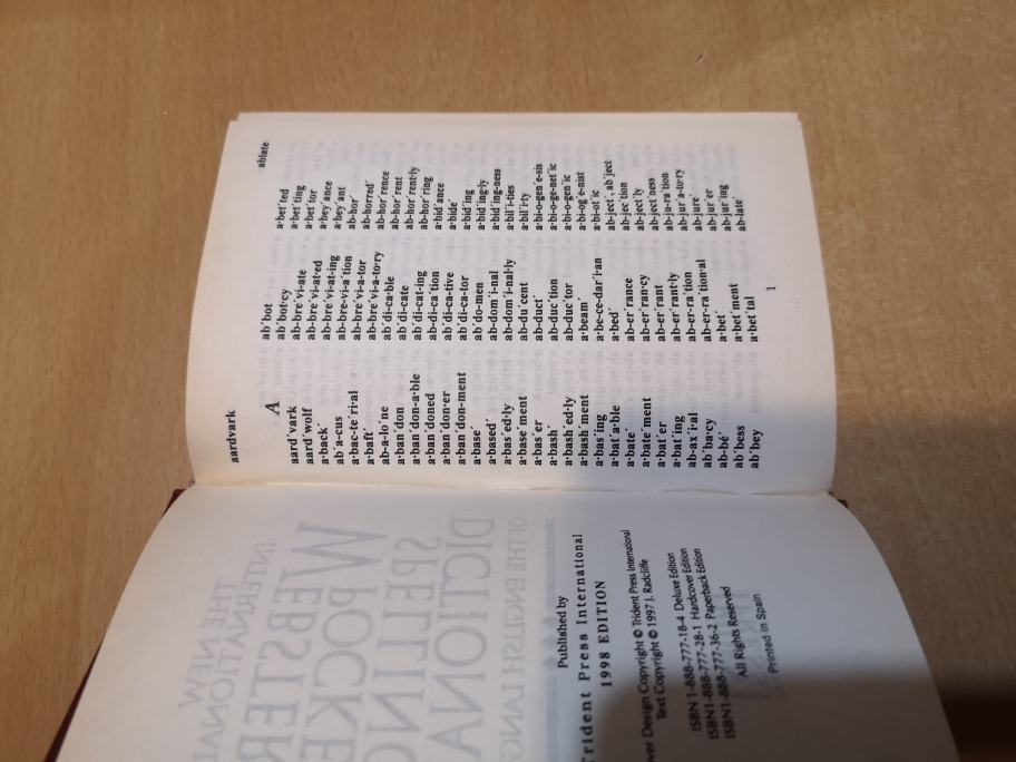 Opombe Hrbtni stv. nasl.: The new international Webster's pocket spelling dictionary