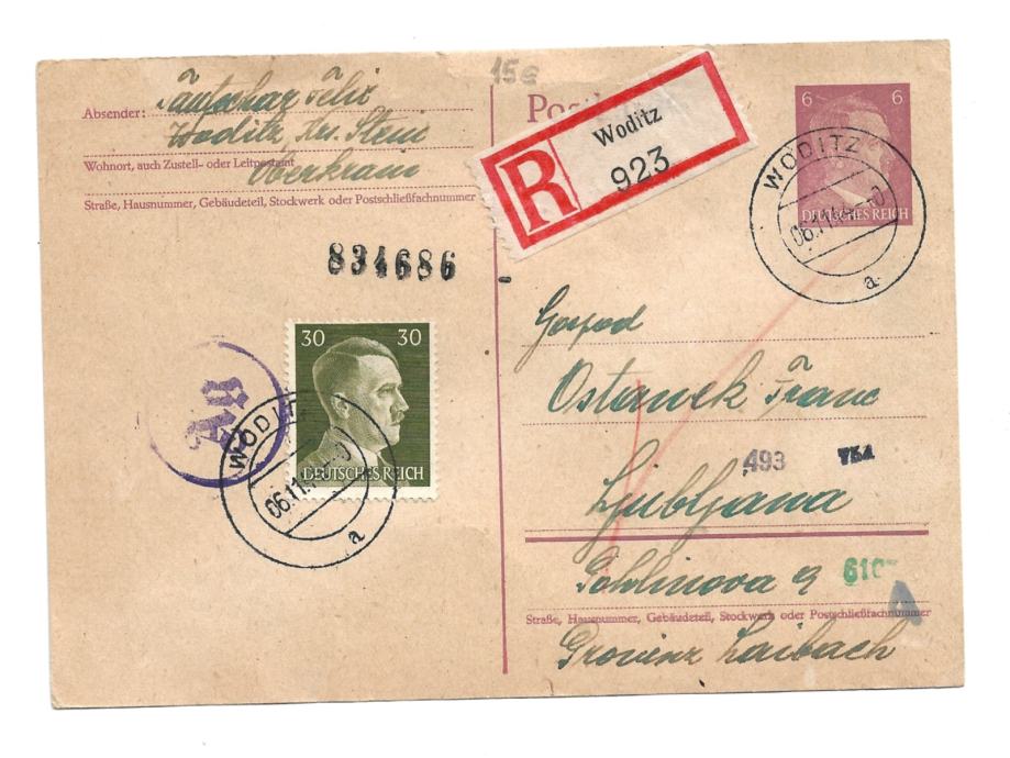 3. Dopisnica, ki je leta 1944 potovala iz Vodic v Ljubljano + R in žigi - 15 eur