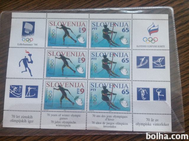 Komplet 6 znamk Slovenija ,izdanih ob 70 obletnici zimskih olimpijskih iger prodam. Prevzem v Lj., lahko pošljem.