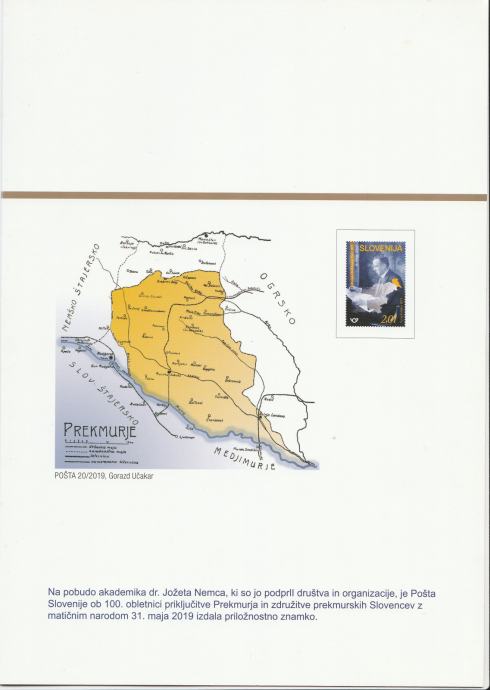 PRODAM FOLDER S PRILOŽNOSTNO ZNAMKO OB 100ti OBLETNICI PRIKLJUČITVE PREKMURJA K SLOVENIJI. SLIKE SO V PRILOGI.