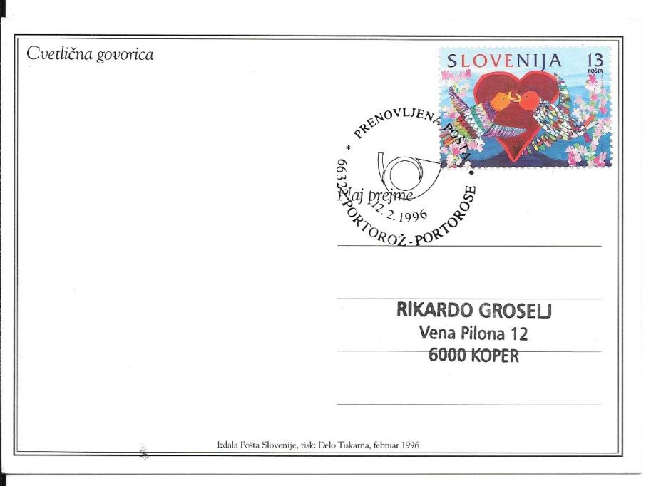 PORTOROŽ 12.2.1996, PRILOŽNOSTNI ŽIG,