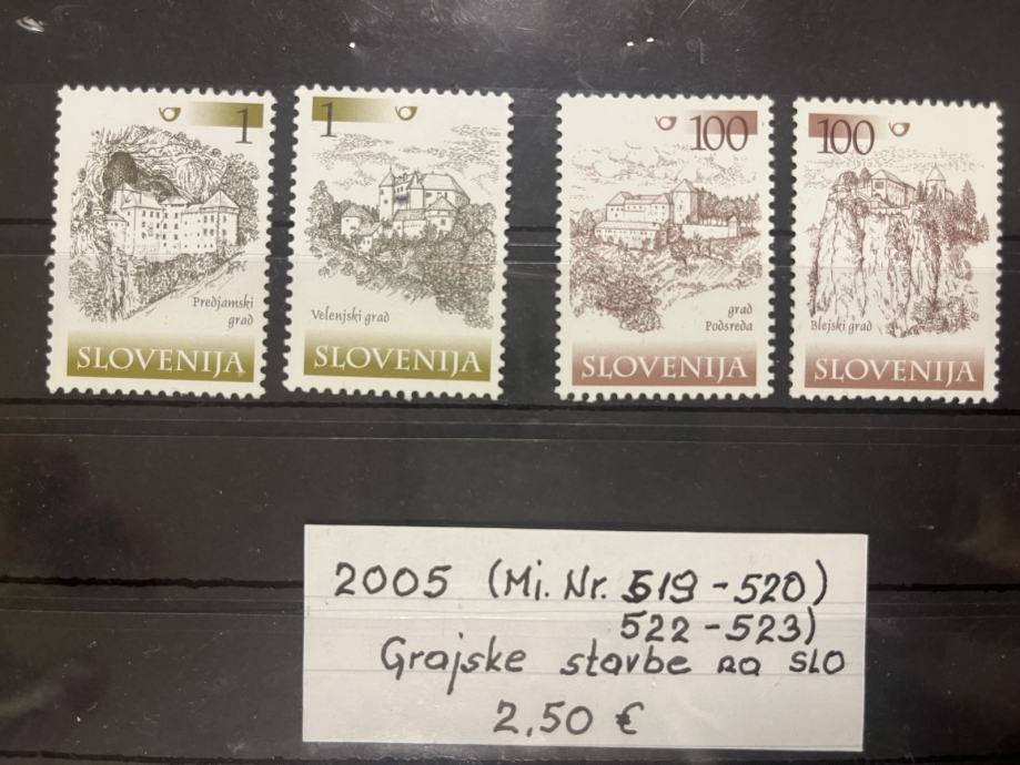 Prodam znamke Slovenija 2005 (MI 519-520, 522-523) Grajske stavbe na SLO**