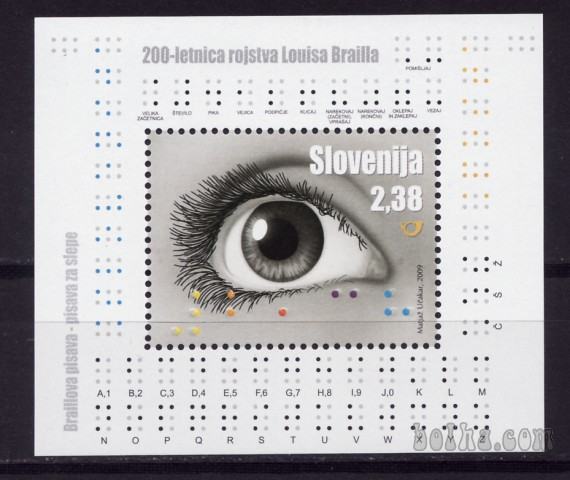 Slovenija, blok Louis Braille (Braillesova pisava), nežigosan 2009.