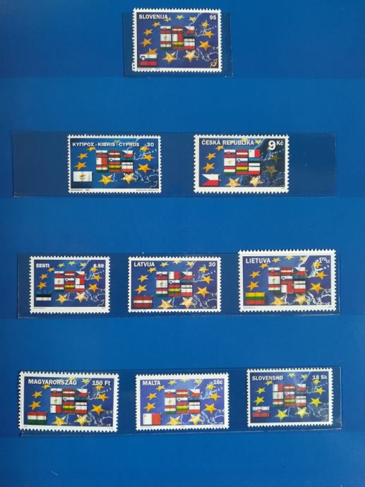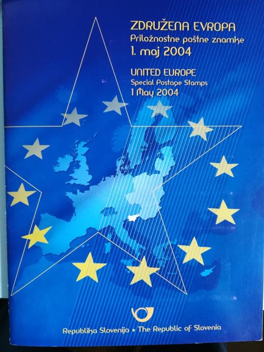 Prodam mapo priložnostnih poštnih znamk - Združena evropa 2004. V mapi je 9 znamk, po ena iz Slovenije, Cipra, Češke, Estonije, Latvije, Litve, Madžarske, Malte in Slovaške.