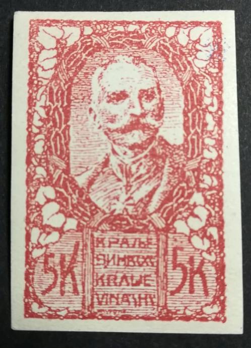Prodam znamko iz serije Verigar. Motiv - kralj Peter I. Knjigotisk na belem papirju "B" rezana. Čista - nežigosana, falc.. Priložen certiffikat.25453