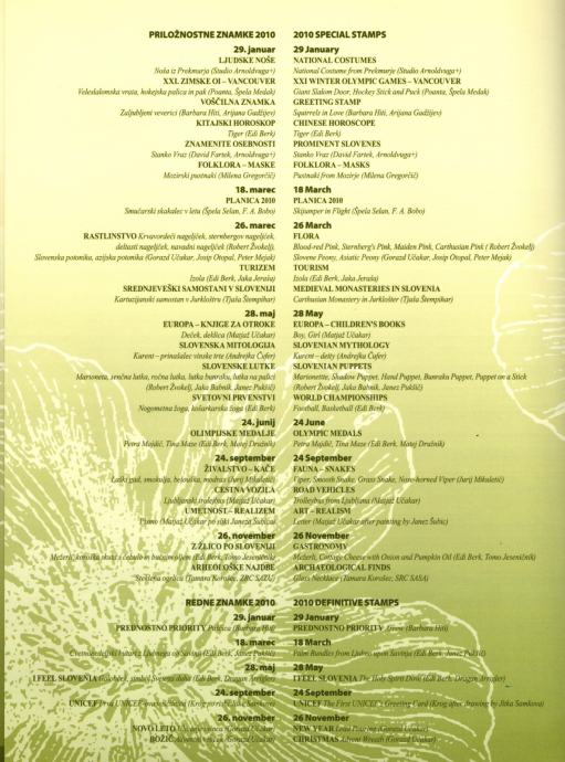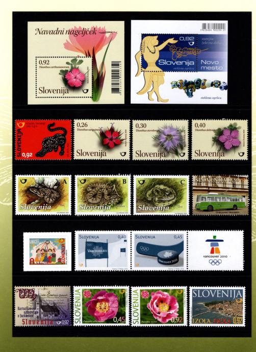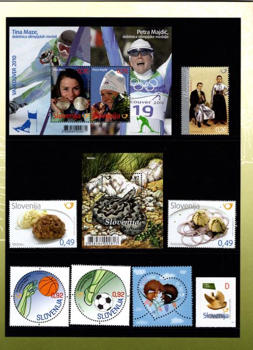 Slovenija 2010 - letna mapa rednih in priložnostnih znamk. V mapi je 37 priložnostnih in 7 rednih znamk. Znamke so nežigosane