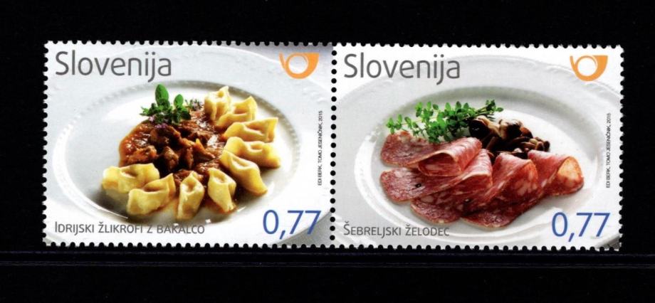 Slovenija 2015 - par znamk z žlico po Sloveniji, Idrijski žlikrofi in šebreljski želodec - nežigosano