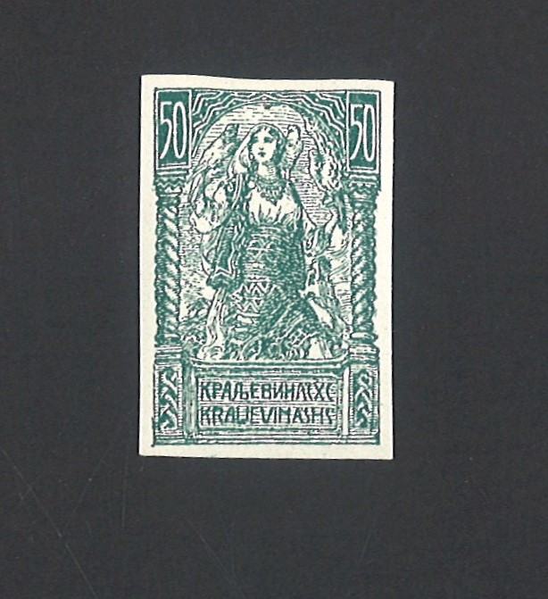 Prodam znamko dekle s sokolom (50 vin.) iz serije verigar. Knjigotisk na belem "B" papirju. Znamka je nezobčana in nežigosana iz leta 1919.