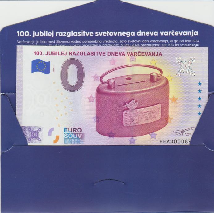 BANK. 0 EURO -100.JUBILEJ RAZGLAS.DNEVA VARČEVANJA (SLOVENIJA)2024.UNC