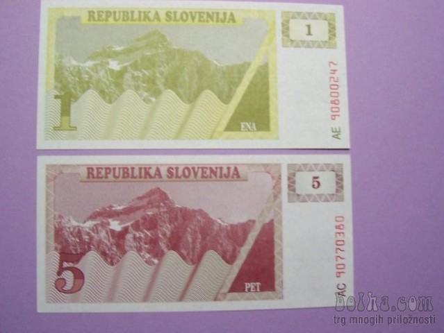 VREDNOSTNA BONA ZA 1 + 5 TOLARJEV, OBA V UNC KVALITETI