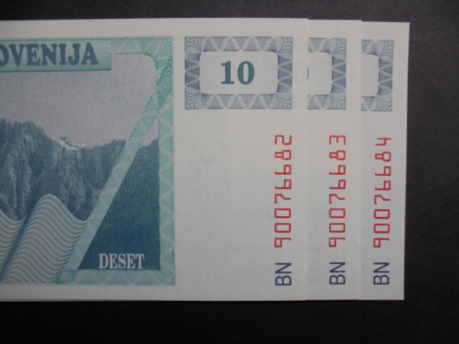 SLOVENIJA BON 10 SIT 1990(1991)UNC serija BN-3 zaporedne serijske št.