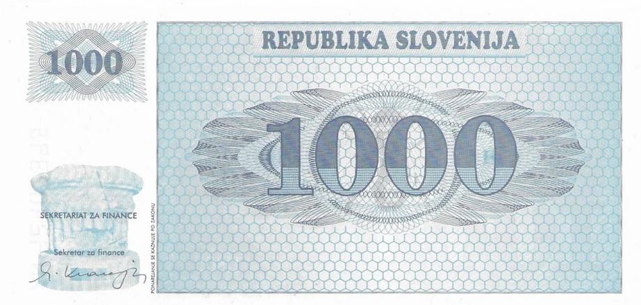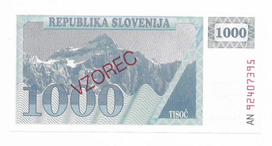 Tiskovno nov bon za 1000 tolarjev s pretiskom vzorec.