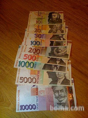 SLOVENSKI TOLARJI - bankovci v kompletu od 10 do 10.000 naprodaj, 2 kompleta.