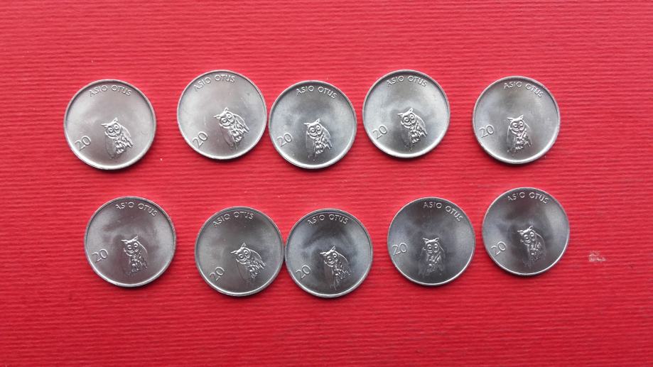 10 coins.20 stotinov,aluminium,Owl/sova.Asio Otus-UNC.
