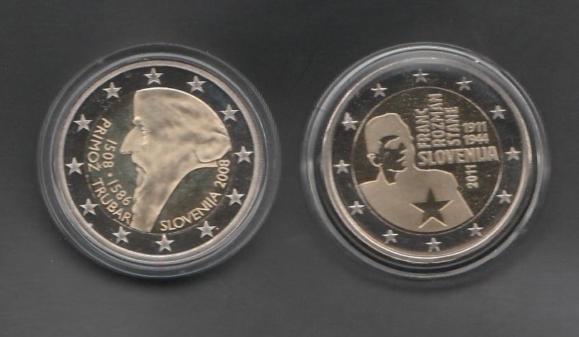 PRODAM DVA 2€ KOVANCA, KATERA STA VIDNA NA PRILOŽENIH SLIKAH. KOVANCA STA PROOF PAKIRANA. LETNIK 2008 = 7€, LETNIK 2011 = 8€.