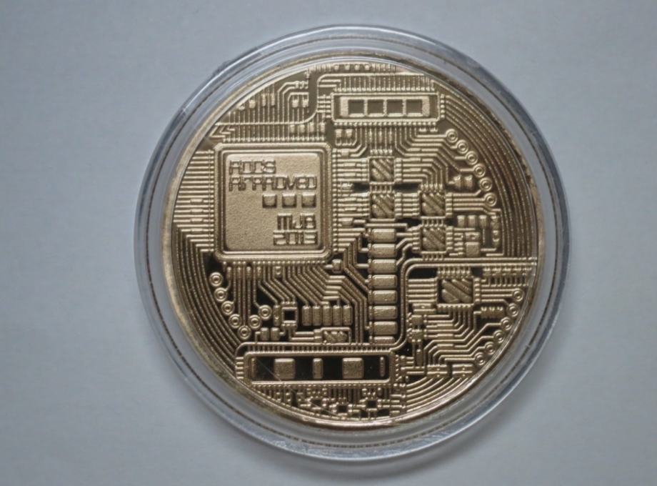 Prodam Bitcoin pozlačen fizični kovanec-BTC kriptovaluta zbirateljski kovanec v plasticnem etuiju.