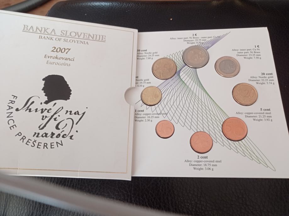 Prodam komplet evro kovancev 2007 Slovenija , France Prešeren, dobro ohranjen.