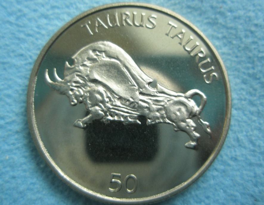 Na zadnji strani kovanca je v osrednjem delu upodobljen bik. Nad njim je ob zgornjem robu v latinščini napisano ime »TAURUS TAURUS«. Ta napis je napačen. Znanstveno ime bika, upodobljenega na zadnji strani kovanca, je v resnici Bos taurus. Ob spodnjem robu je oznaka vrednosti s številko 50.