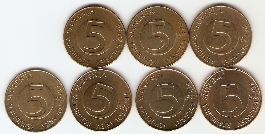 5 tolarjev 1992,93,96,97,98,99,2000-cena za kos.